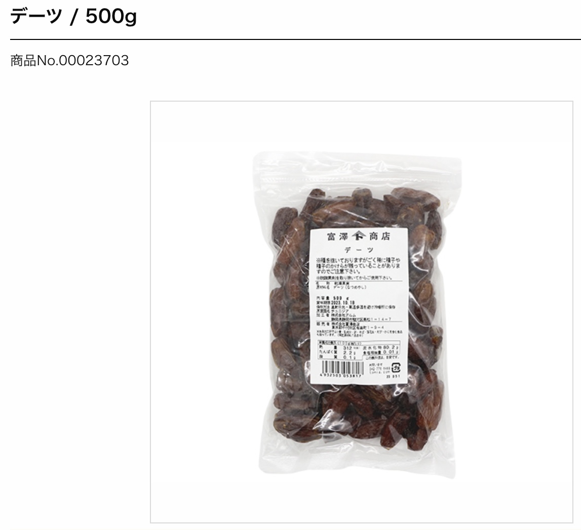 チュニジア産。なつめやしの果実でトロピカルフルーツの一種。干し柿に似た強い甘味が特徴です。