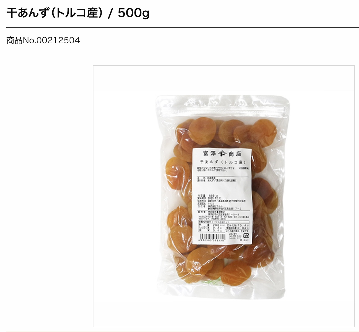 トルコ産。酸味が少なくやわらかいあんずです。添加物を使用していないので素材本来の風味が特徴です。