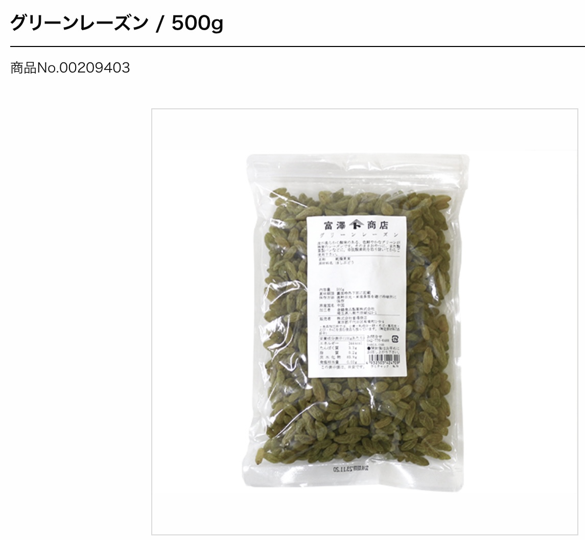 中国産。皮が柔らかく酸味のある、色鮮やかなグリーンが特徴のレーズンです。