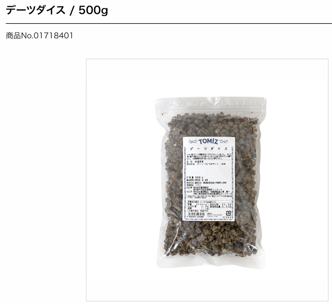 イラン産。デーツを種抜きをして5mm角にカットしたものです。