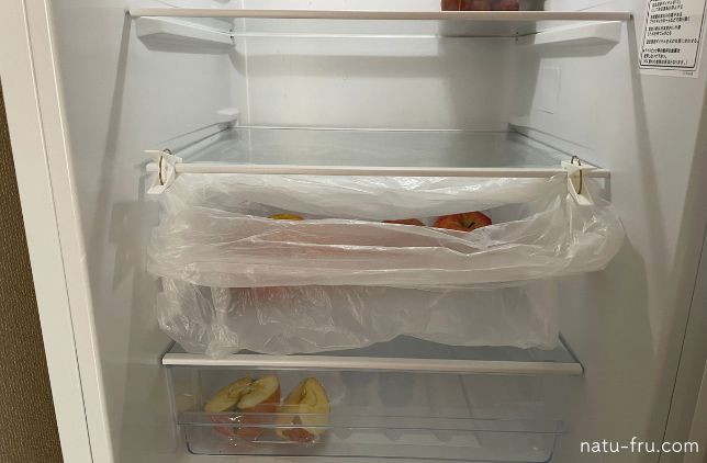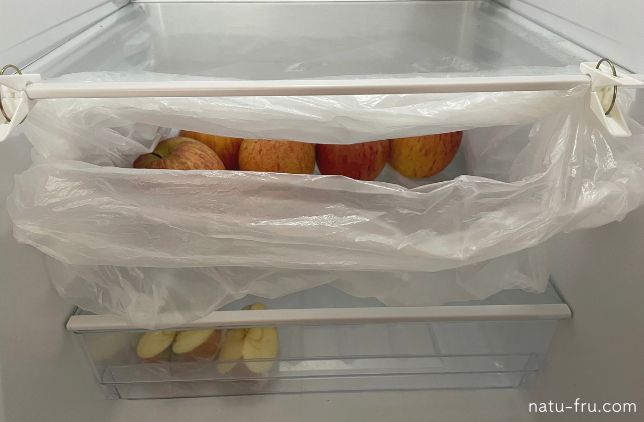 (私の場合、少し消費してからだったので、10kgすべてのリンゴが我が家の冷凍冷蔵庫に収納ができるかは、次回やってみないと分かりません…)